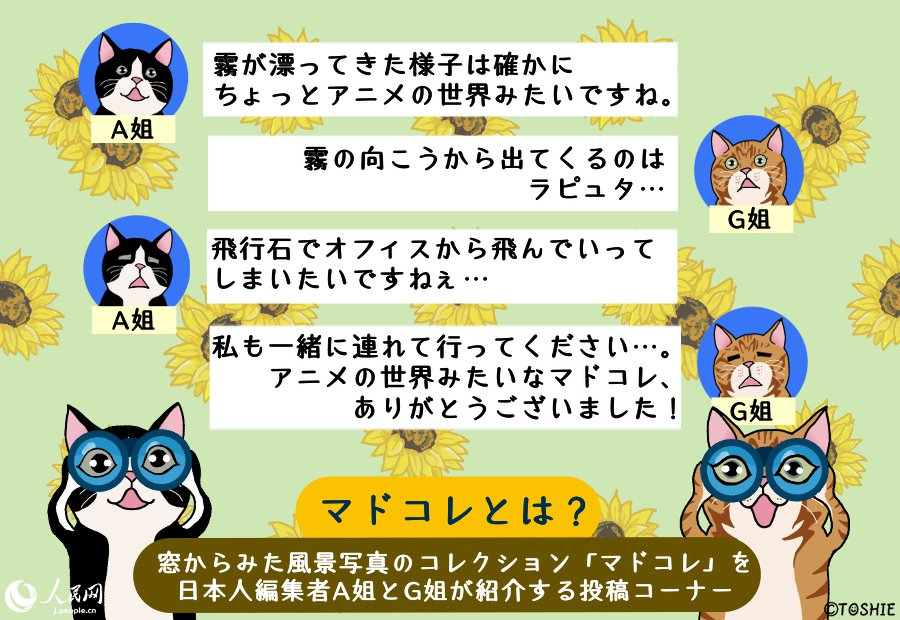 そんな皆さまからお寄せいただいたマドコレの数々を、人民網日本人編集者のA姐とG姐がコメントしながら、のんびり紹介していきます。(提供/人民網日本語版