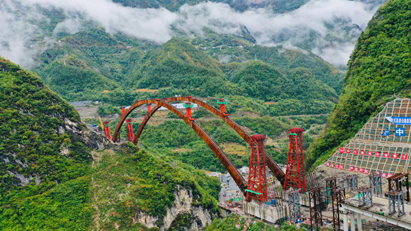 8日間に及ぶ計17回の回転操作を経て、重慶城開高速道路蓼子特大橋が100メートルの高空で「空中バレエ」を披露し、29日に無事閉合した。