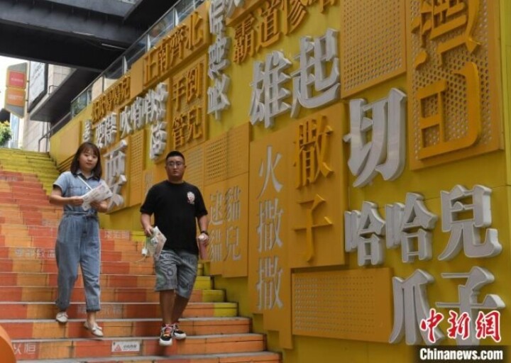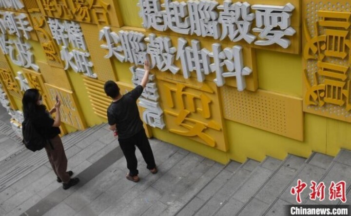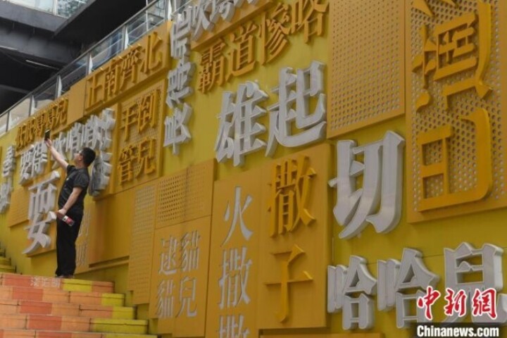 重慶市の街中に6日、「重慶方言」の壁が登場し、写真を撮影しようと多くの市民が訪れている。中国新聞網が伝えた。