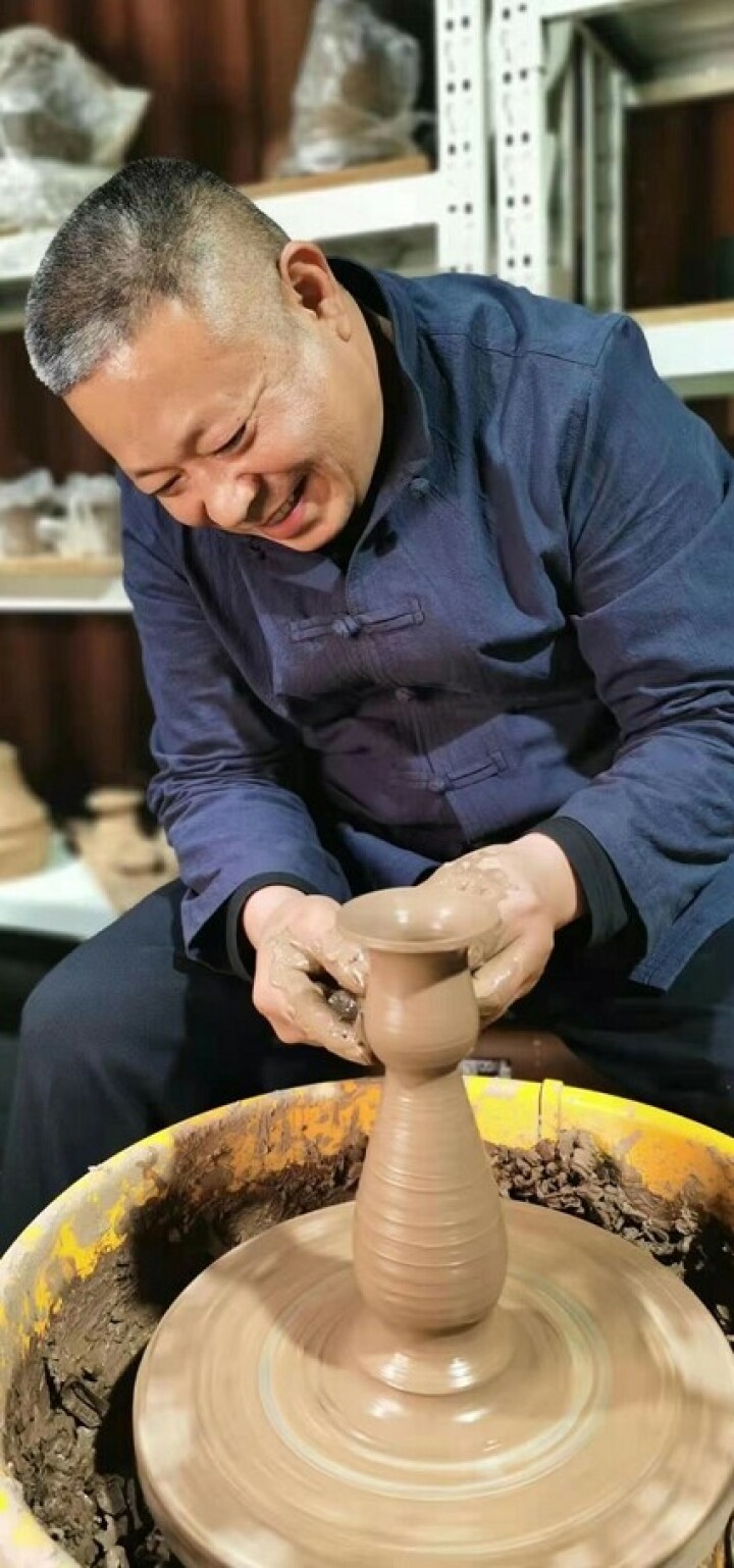 18歳の時に陶芸の世界に進み、「蛋殻黒陶」の製作方法を30年以上模索し、研究してきた劉館長は、「2000年から、『蛋殻黒陶』の製作に専念するようになり、2006年に、出土した蛋殻黒陶高柄杯を基準にした再現に初めて成功した」と説明する。