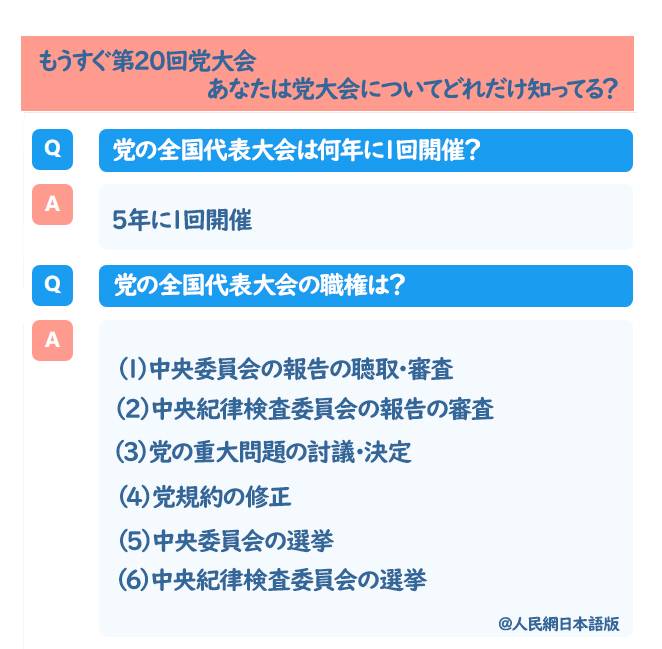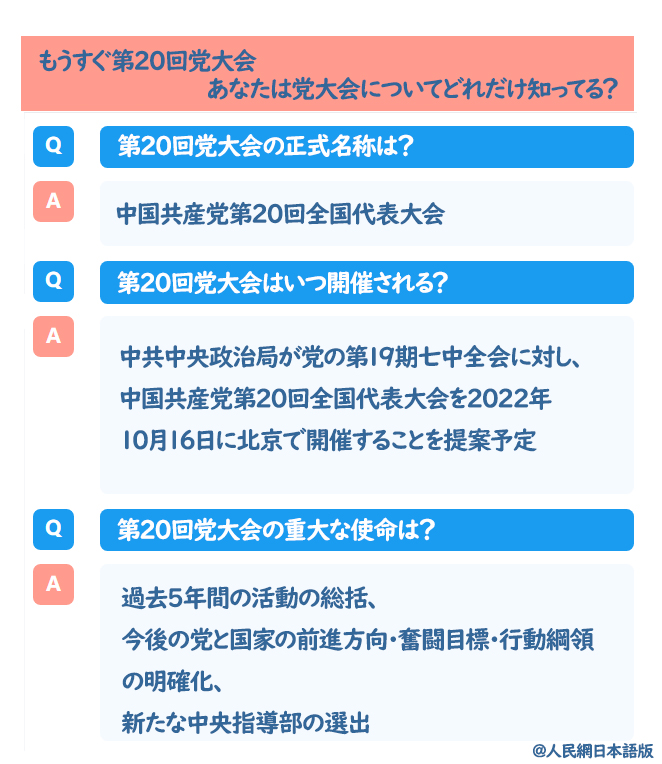 1. 第20回党大会の正式名称は?