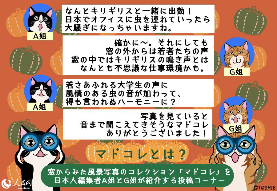 そんな皆さまからお寄せいただいたマドコレの数々を、人民網日本人編集者のA姐とG姐がコメントしながら、のんびり紹介していきます。(提供/人民網日本語版)