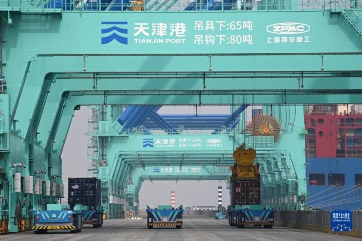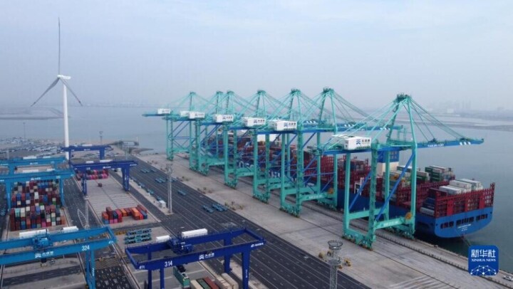 天津港「スマートゼロ炭素」埠頭の貨物取扱量が13日で100万TEUを突破した。