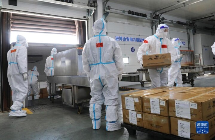 今後10日間に、世界の輸入博参加企業約100社が出展する冷凍食品3000箱は、総合倉庫内で「最小包装単位」での消毒とPCR検査が集中的に行われる。(提供/人民網日本語版・編集/KS)