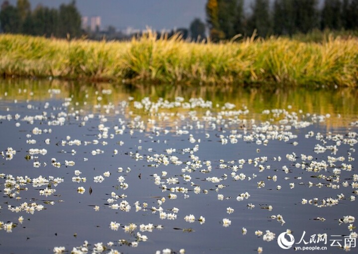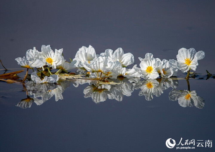 近くで見ると、澄んだ水面に海菜花が一面に咲き誇り、波とともに揺れ動く。そして遠くから眺めれば、青空と白い雲の下で、漁民が小舟を漕いで海菜花の咲く湖面を進み、遠くには山々と村落が見える……。雲南省大理ペー族自治州剣川県剣湖では10月、こんな風景が見られる。海菜花(学名はOttelia acuminata)は雲南固有の水生植物で、水質の良いところでしか育たないため、「水質のバロメーター」と呼ばれている。人民網が伝えた。