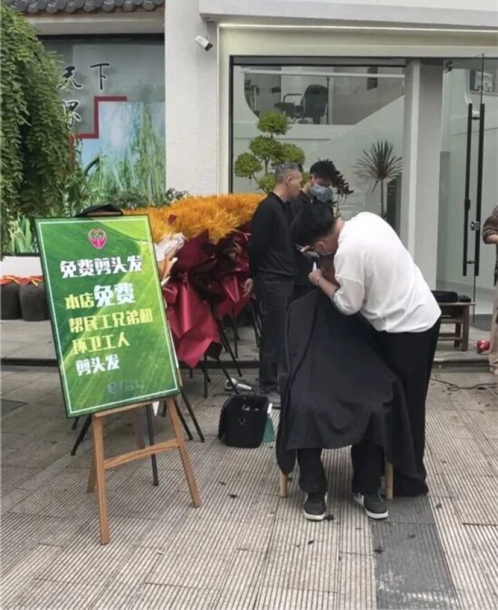 廖さんは思いついたらすぐに行動に移し、店で働く見習いと一緒に、「出稼ぎ労働者や清掃作業員は散髪無料」という看板を店の前に置いた。