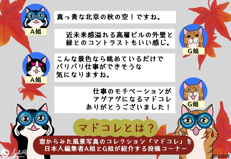 そんな皆さまからお寄せいただいたマドコレの数々を、人民網日本人編集者のA姐とG姐がコメントしながら、のんびり紹介していきます。(提供/人民網日本語版)