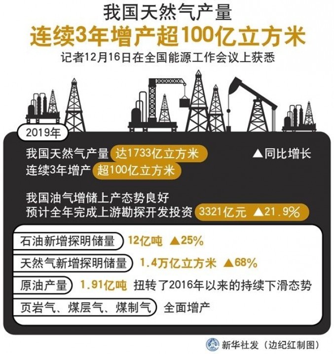 16日の全国エネルギー活動会議で明らかになったところによると、中国の今年の天然ガス生産量は1733億立方メートルにのぼり、3年連続で100億立方メートル以上の増産となった。資料写真。