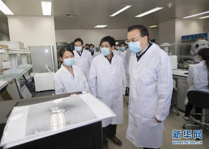 李克強首相は30日、中国疾病抑制センターを訪れ、新型コロナウイルス感染による肺炎の予防・抑制に関する科学研究状況を視察し、専門家と医療スタッフから感染拡大予防・抑制についての意見や提案を聴取した。