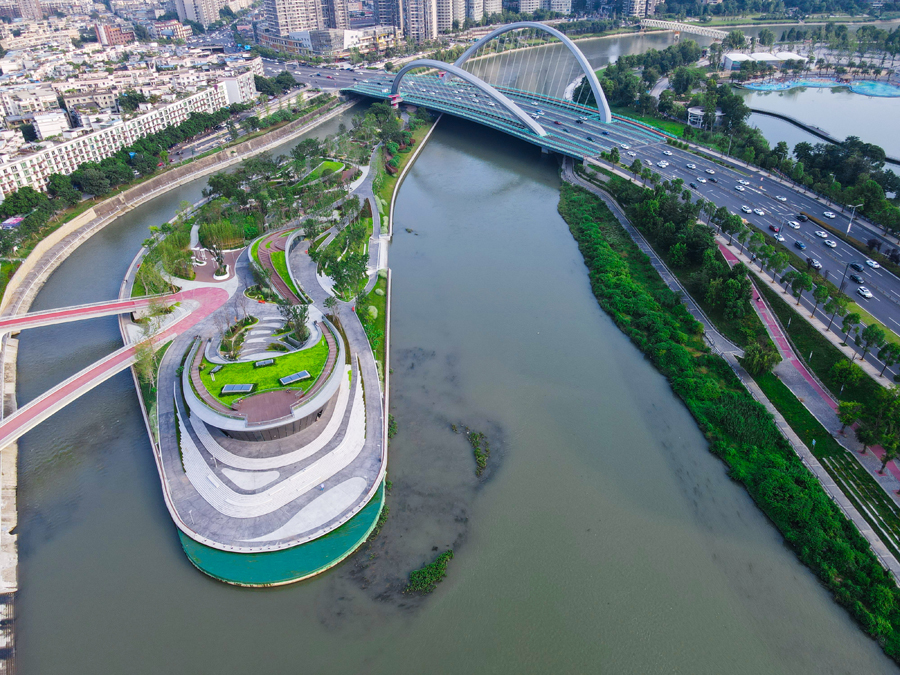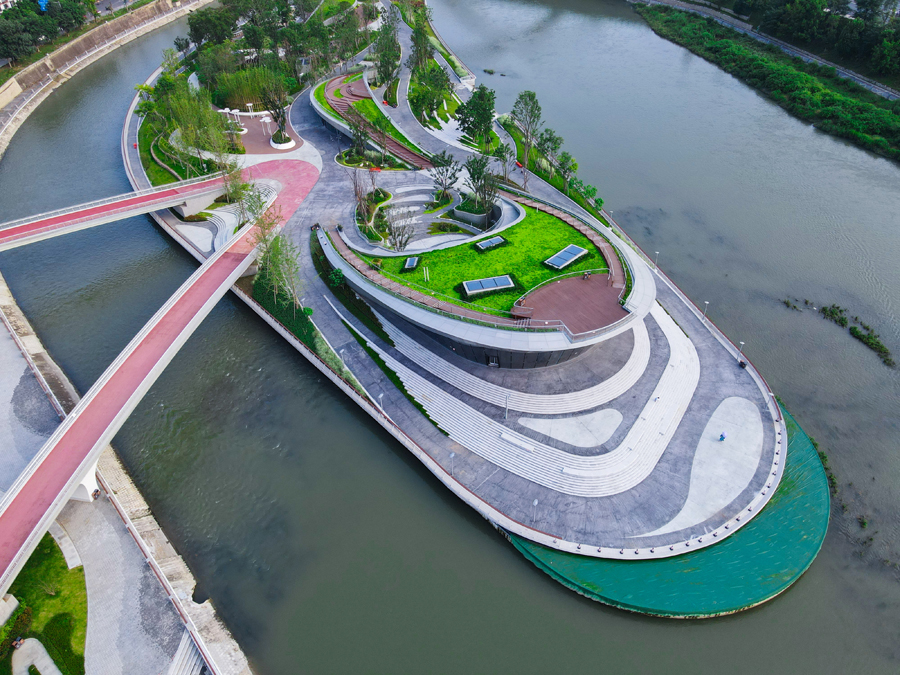 四川省成都市に11日、同市初のエコロジーとアート、テクノロジーを一体化させた「水に浮かぶ公園」である「芙蓉島公園」がオープンした。