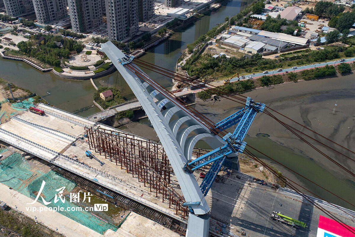 海口橋梁主塔の垂直方向への回転作業が25日、無事完了した。