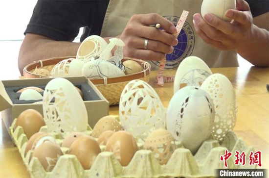 蘭州資源環境職業技術大学のエッグアートの授業で、エッグアートを学ぶ大学生。