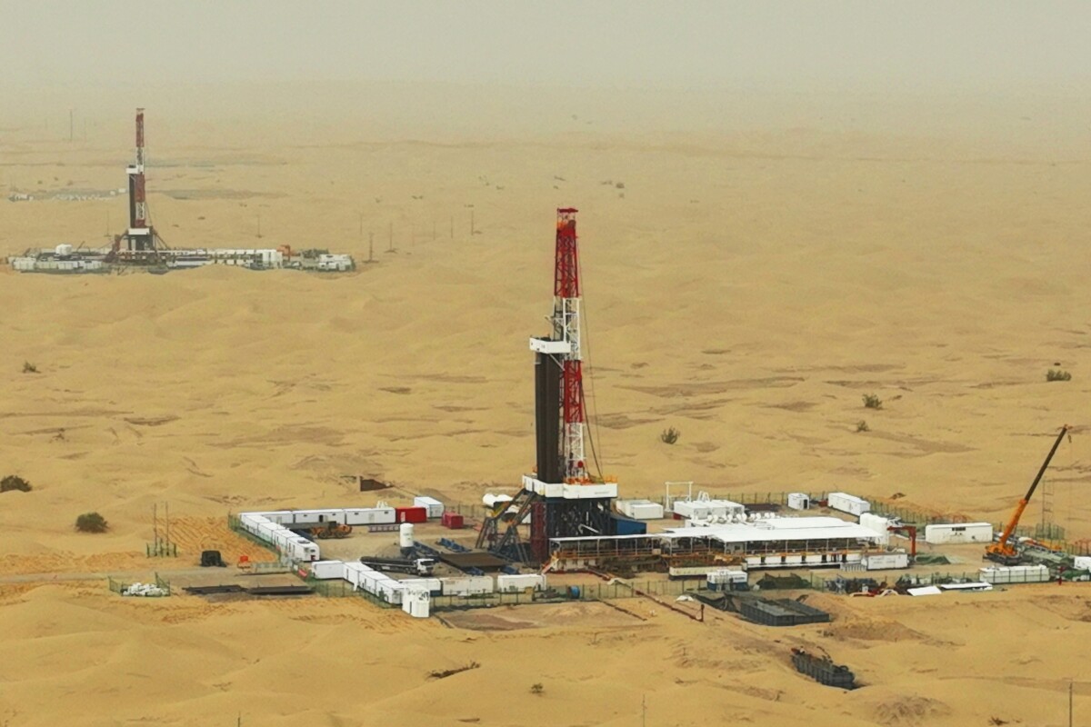中国石油天然ガス集団は9日、タクラマカン砂漠奥地にある中国最大の超深度油田「富満油田」の石油・天然ガス生産量が累計で1000万トンを超えたことを明らかにした。写真は富満油田。