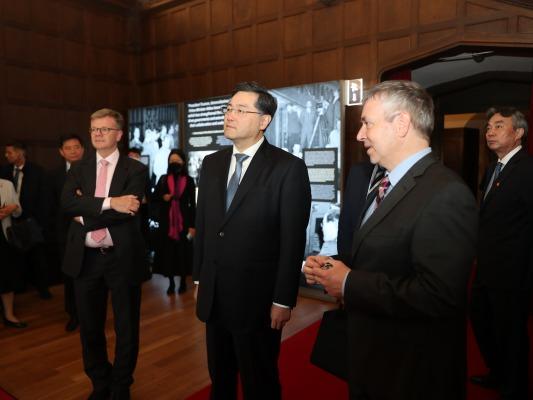 秦剛国務委員兼外交部長はベルリンで現地時間10日、ポツダム会談会場跡地を見学し、演説を行いました。
