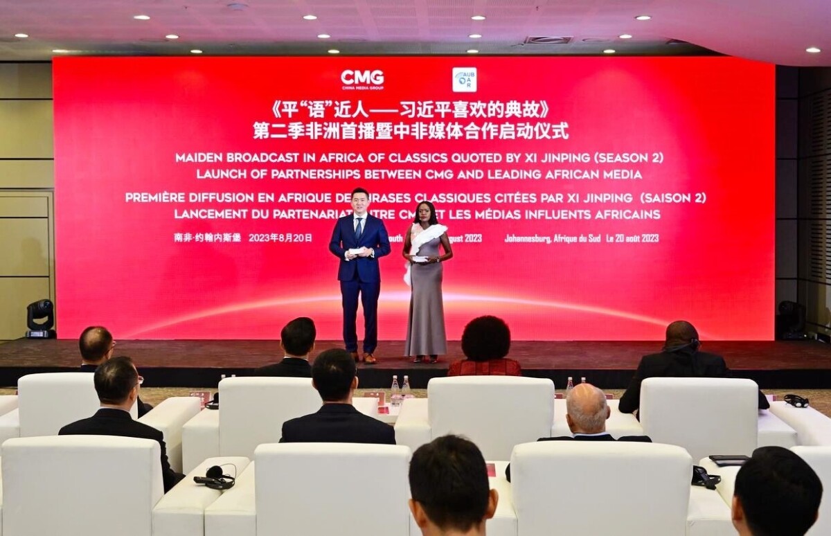 中央広播電視総台が制作したテレビ番組『身近に平易にー習主席のことば(シーズン2)』の英語、フランス語、アラビア語などの多言語版の放送式が20日、ヨハネスブルグでおこなわれた。